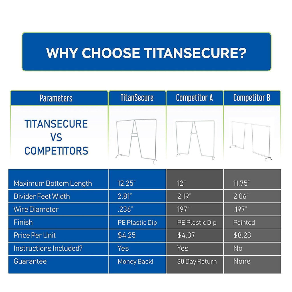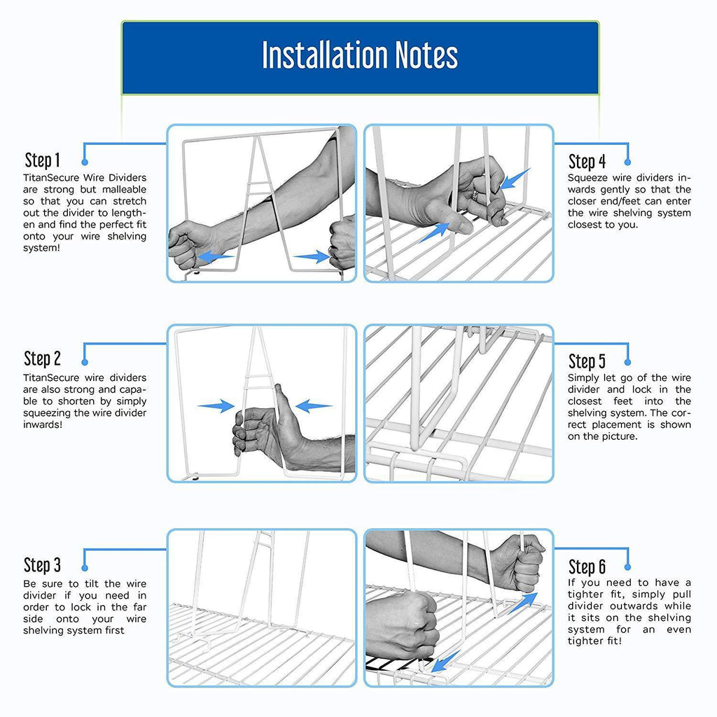 ✅ CLOSET DIVIDERS COMES WITH ULTRA HEAVY DUTY FINISH! - Don't compromise on quality, TitanSecure shelf separators are rust and scratch free, super tough AND environmentally friendly! Purchase comes with ONLY 8 Wire Dividers, DOES NOT INCLUDE WIRE SHELVING OR CLOTHES!